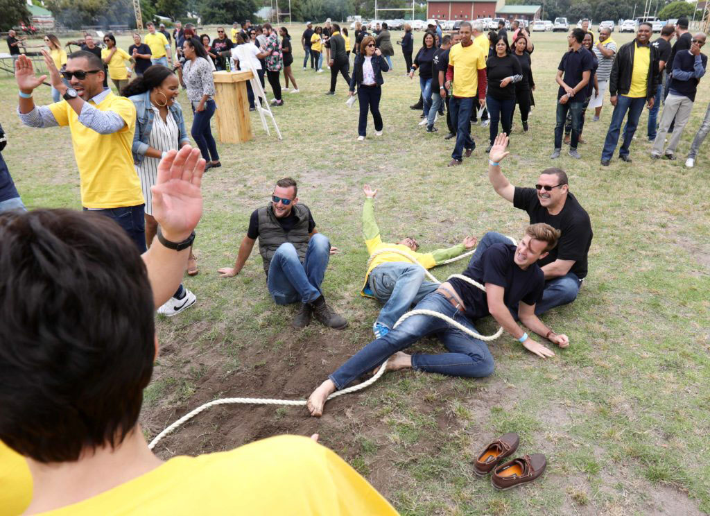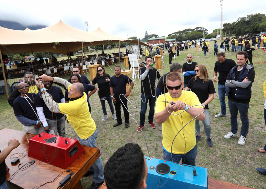 Guests enjoyed a delicious gourmet spit braai lunch, with refreshments from the Saggy Stone Craft Beer bar, and the Amadahlia Craft Gin Bar, while they competed in team challenges (nothing like a good ‘ol Egg and Spoon Relay , Tug-of-War, Three-Legged Race and Giant Hand Buzzer Challenge to get the competitive juices flowing!).